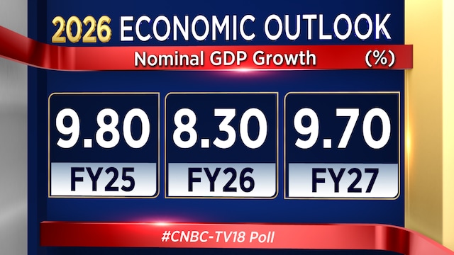 According to the CNBC-TV18 outlook poll, India’s real GDP growth for FY26 is expected to come in at 7.5%, while nominal GDP growth is estimated at around 8.3%.